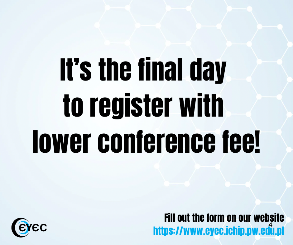 The early bird registration closes today and the fees go back to regular – 850 PLN (200 EUR). It’s your last chance to register with lower fee of 690PLN (165EUR).
